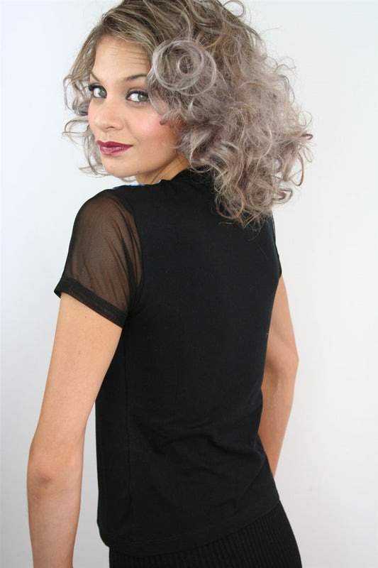 V NECK PAUA TOP WITH NETTING